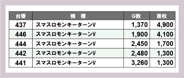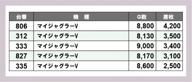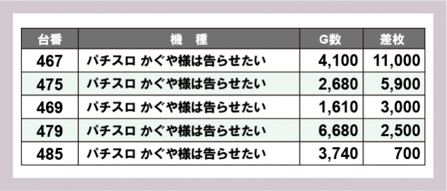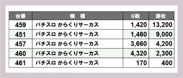 ※差枚数順に掲載しています