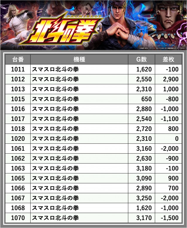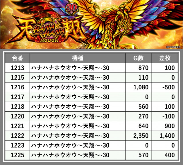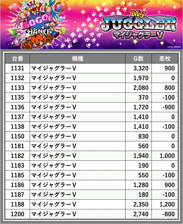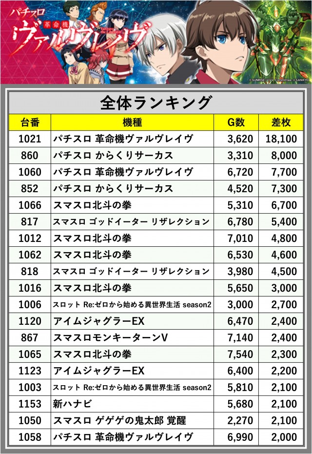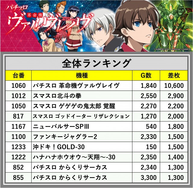 厳選された取材対象機種をはじめ、その他スロット全体から好記録が飛び出した!プレイヤーが楽しんだ1日を下記データにて振り返ってみて欲しい。