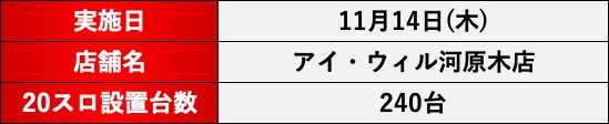 11月14日(木)アイ・ウィル河原木店にて、DMMぱちタウンの新感覚取材「スロセレ」を実施。