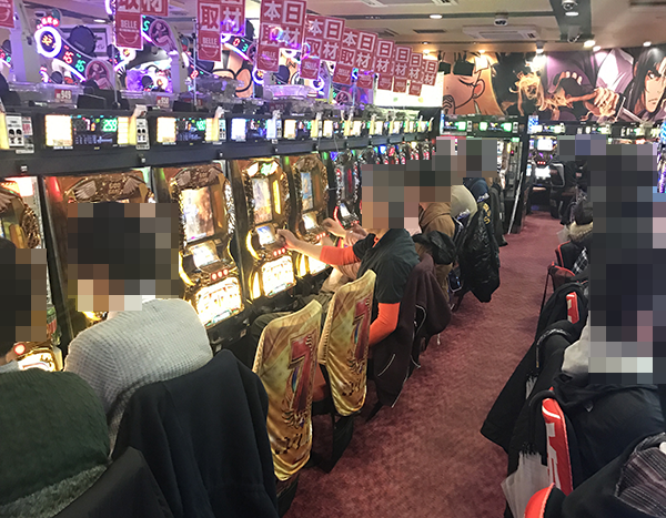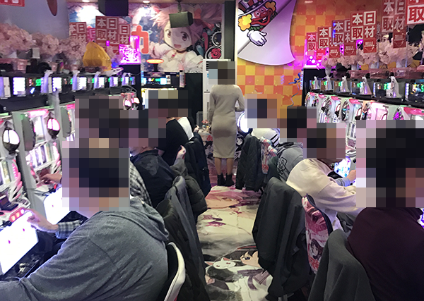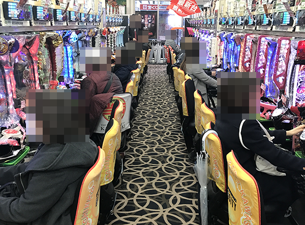 1円パチンコにも、明るい表情で遊技をおこなっているプレイヤーが多数。