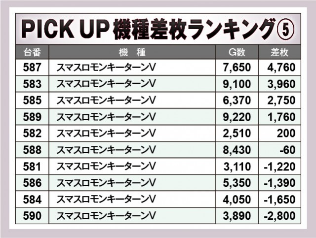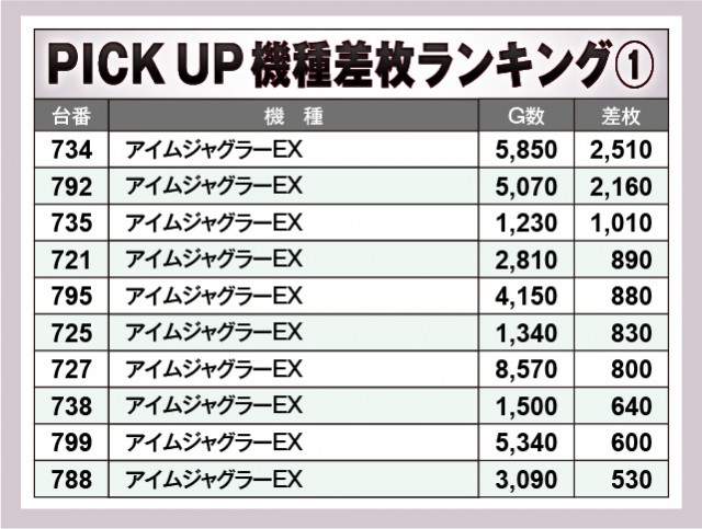 ※差枚数順に掲載しています。