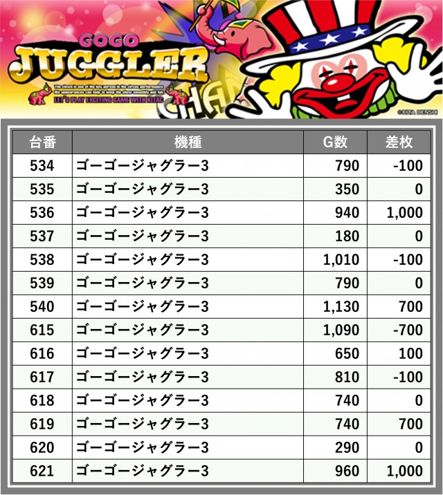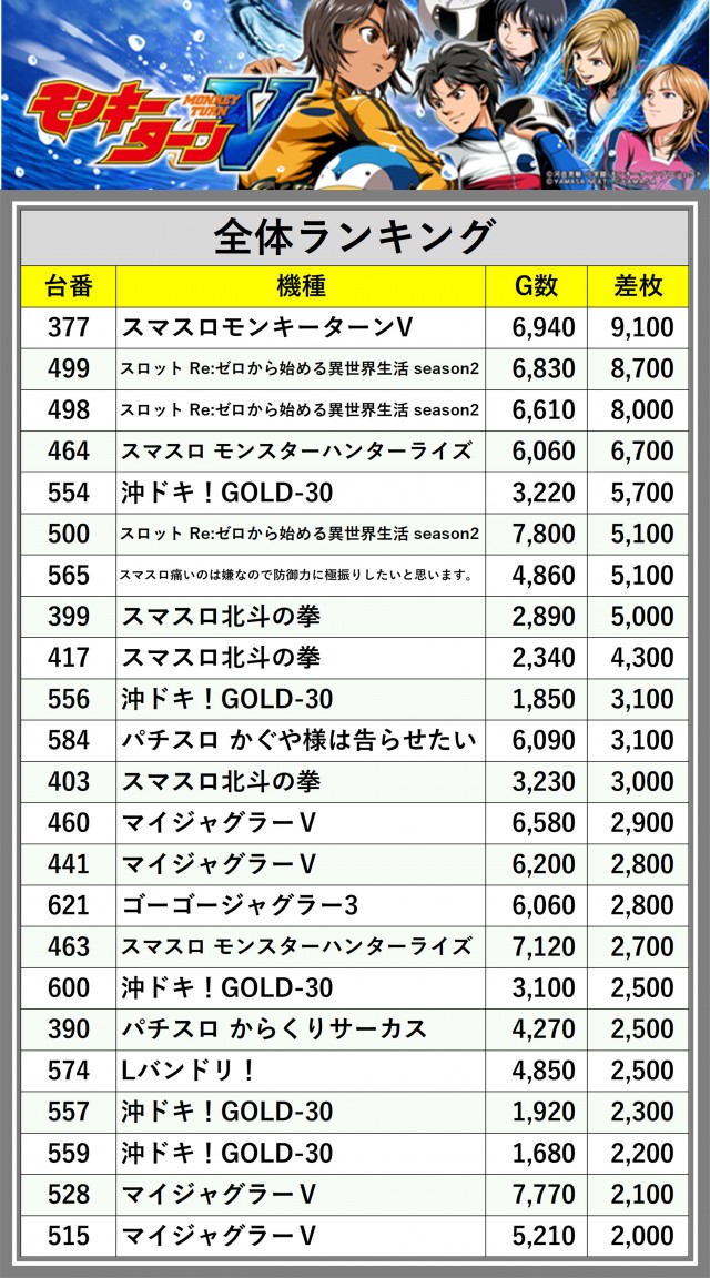 厳選された取材対象機種をはじめ、その他スロット全体から好記録が飛び出した!プレイヤーが楽しんだ1日を下記データにて振り返ってみて欲しい。