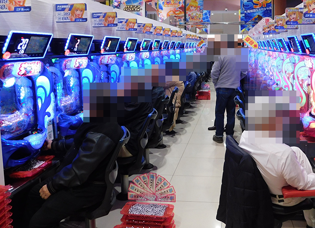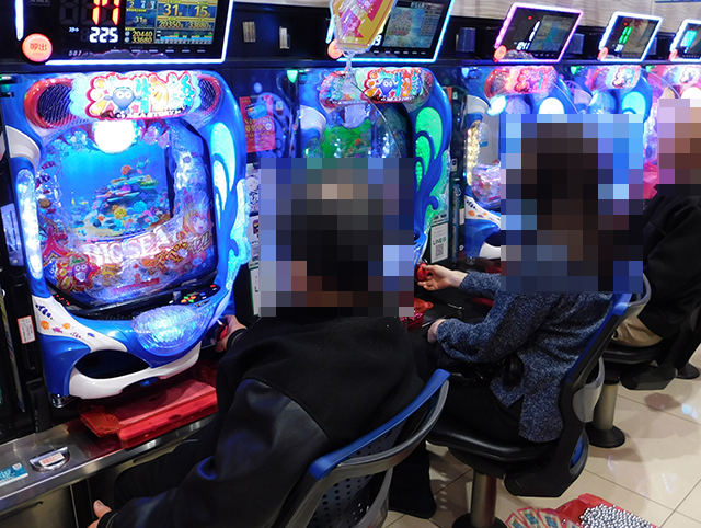 持ち玉を使い、うれしそうに遊技をおこなっている姿があった。