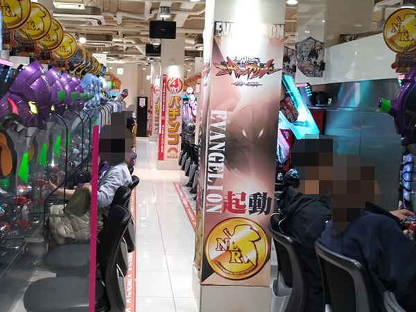 14時半ごろの4円パチンコを見てみると「新世紀エヴァンゲリオン〜未来への咆哮〜」が盛況の様子。機種のポテンシャルを上手く発揮するプレイヤーを多数確認している。