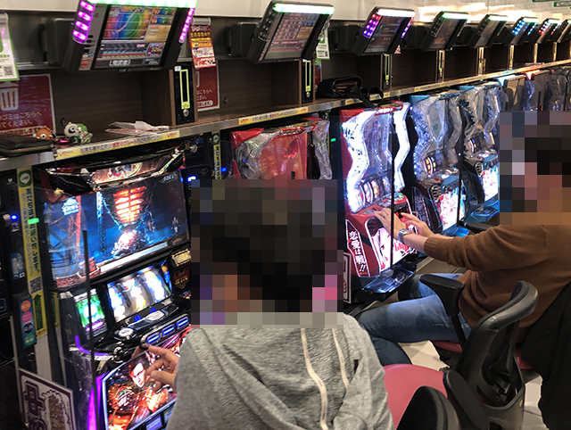 店内をみてみると、スマスロやスマパチなど、さまざまな機種に華やかな光景が広がっていた。
