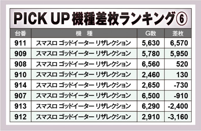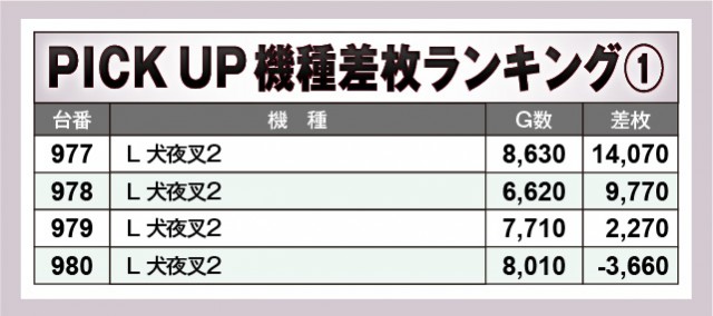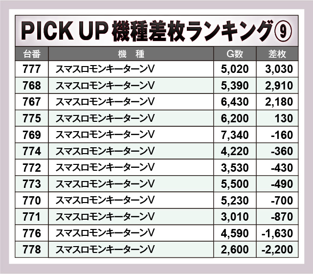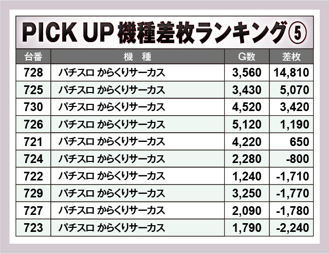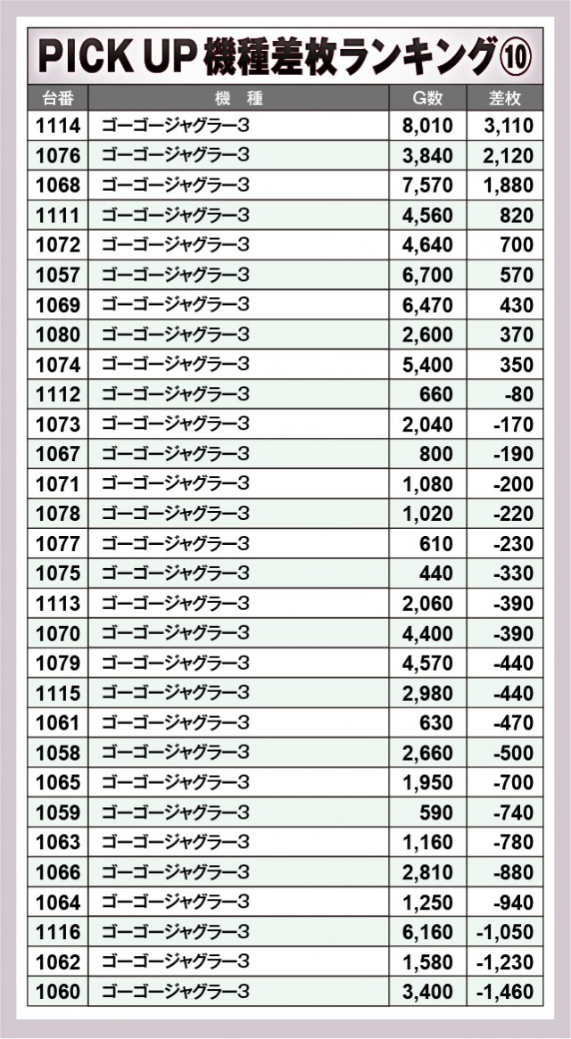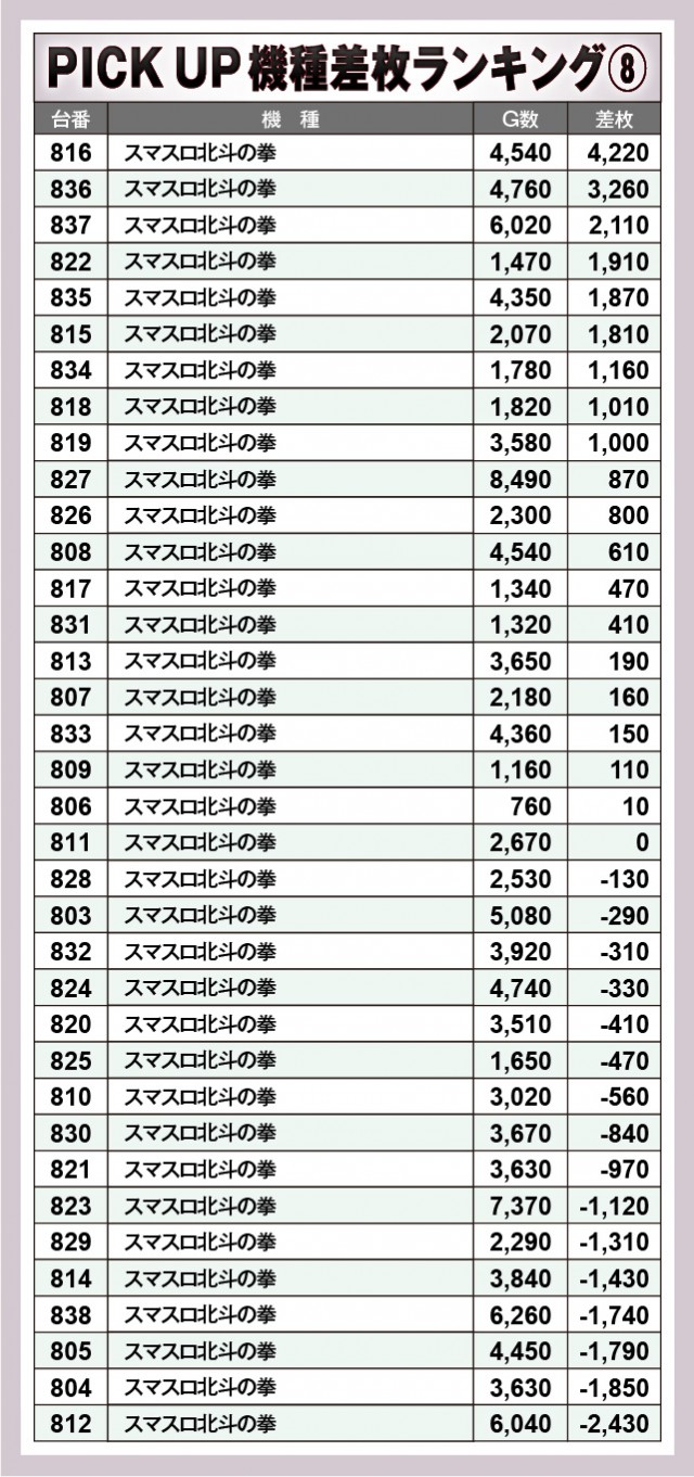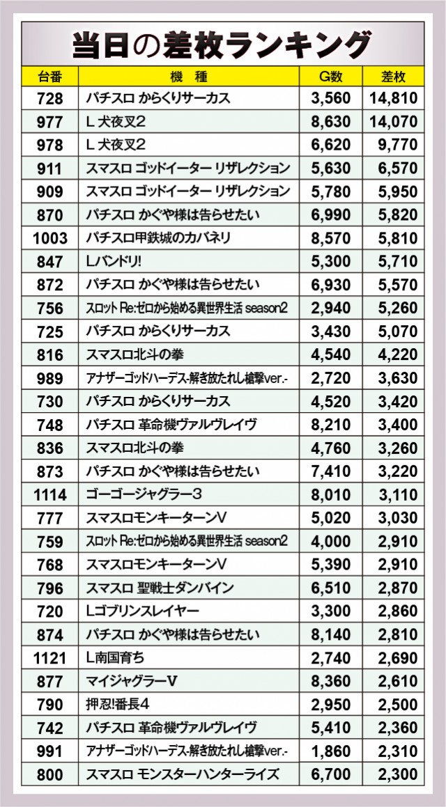 ※差枚数順に掲載しています。