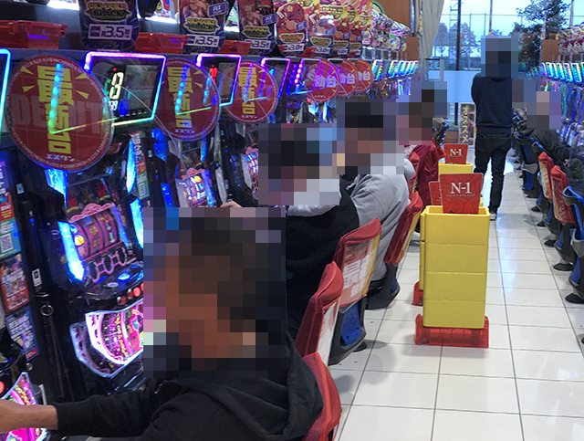 パチスロコーナーでは、沖スロからスマスロまで、さまざまな機種が盛況となっていた。