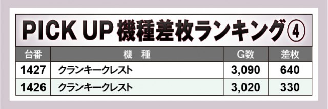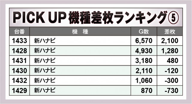 『マイジャグラーⅤ』『パチスロハイパーラッシュ』から4~5,000枚OVERが飛び出しており、さらに『クランキークレスト』『新ハナビ』も含めて、ノーマル機は相当なポテンシャルを秘めていた様子だ。それは回転数に表れており、各所でじっくりと打ち込まれた形跡が見て取れる。右肩上がりに伸びていくグラフを目の当たりにしては、遊技するファンはレバーを叩く喜びを感じていたことだろう。