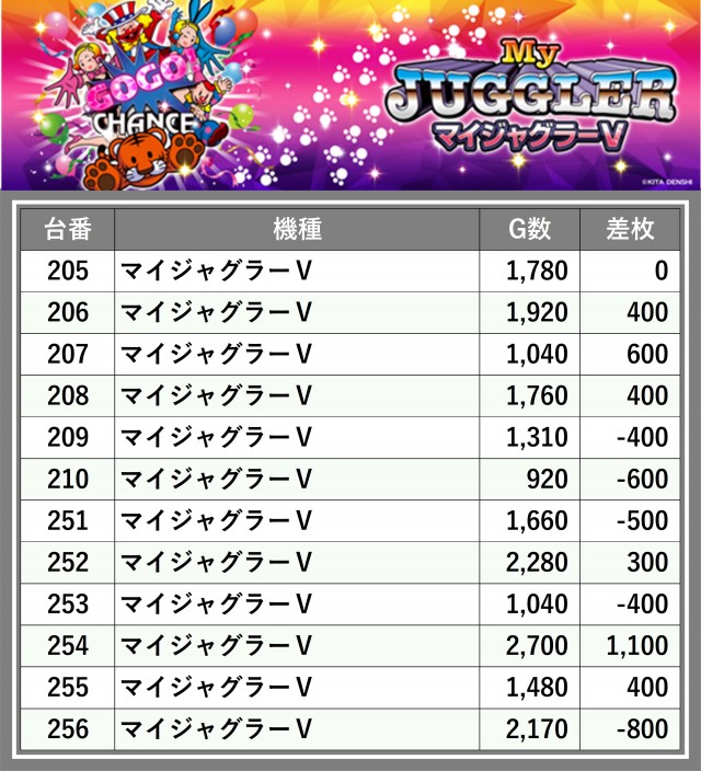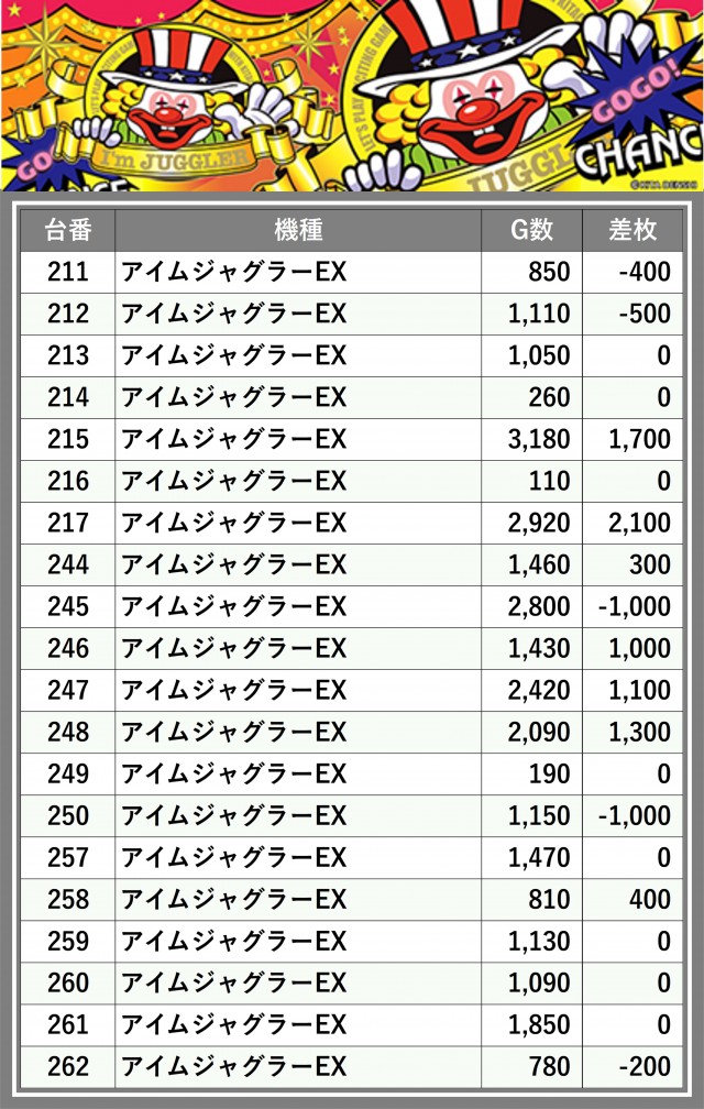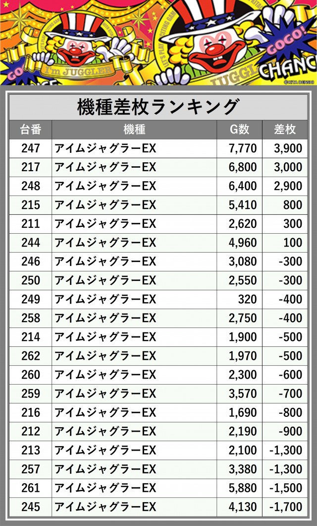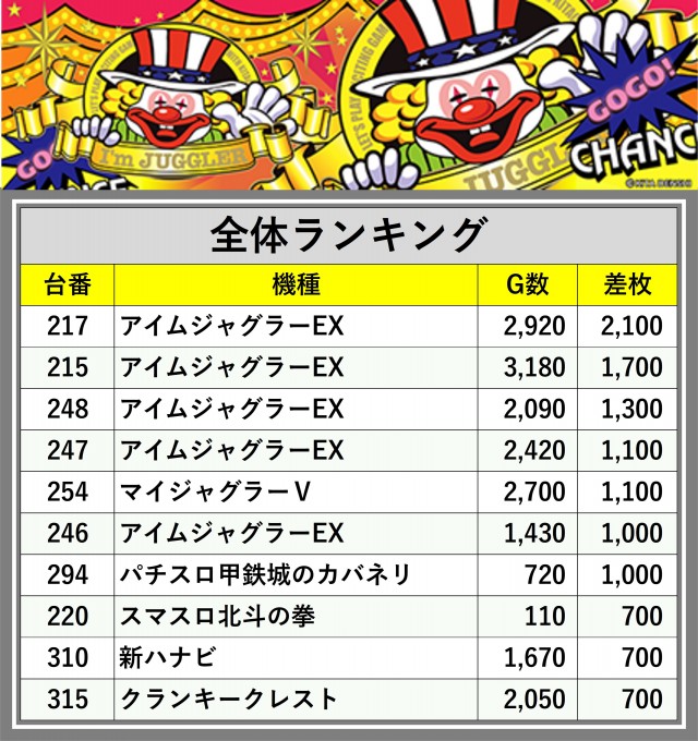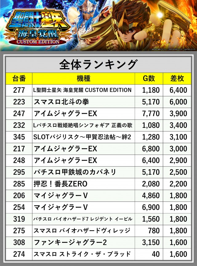 ※差枚数順に掲載しています