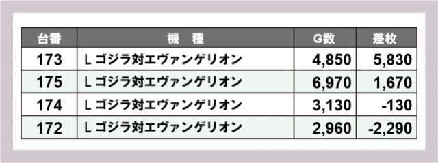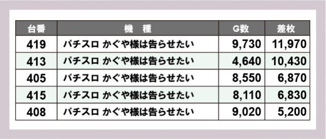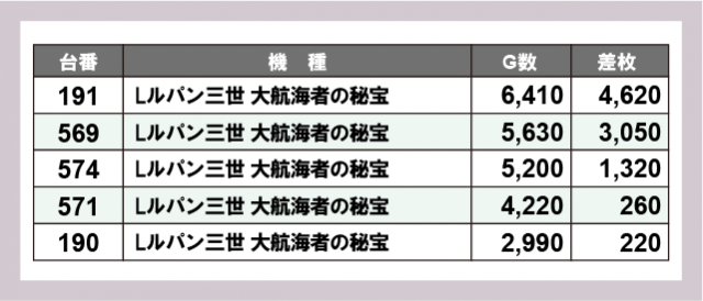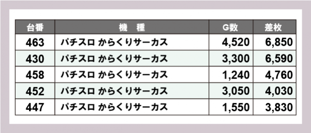 ※差枚数順に掲載しています