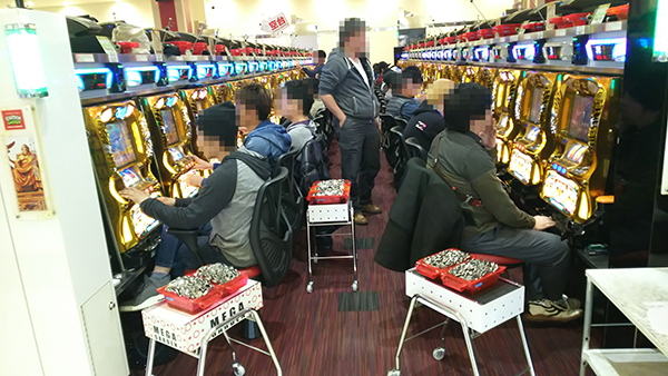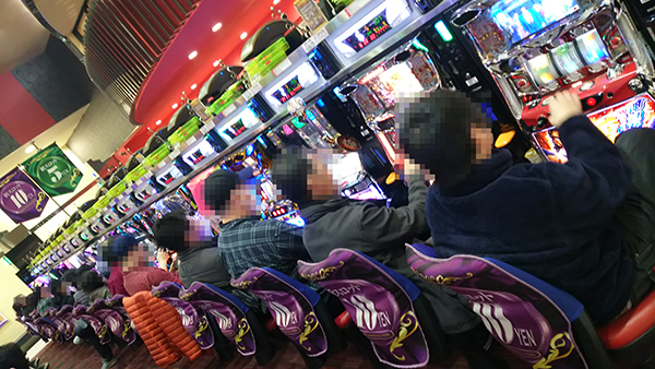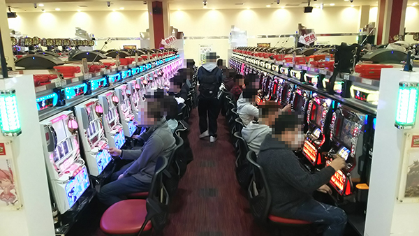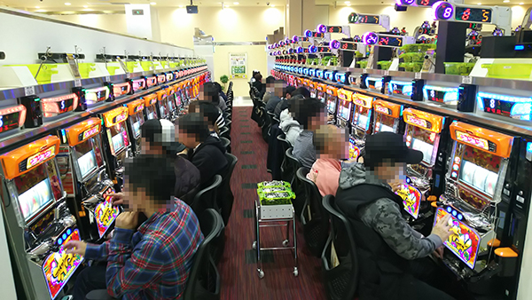 開店すぐの店内を見てみると、パチスロコーナーの盛り上がりが目立つ。