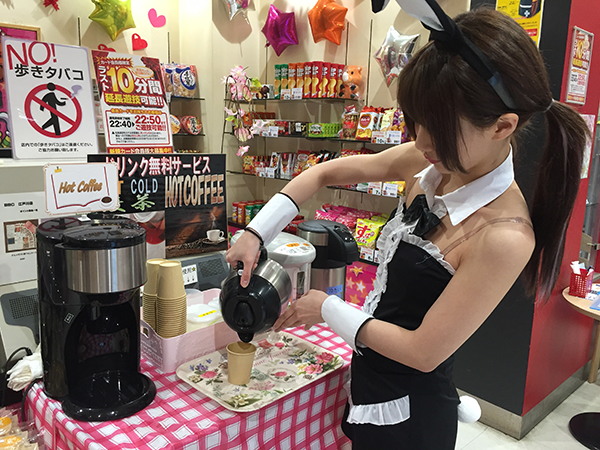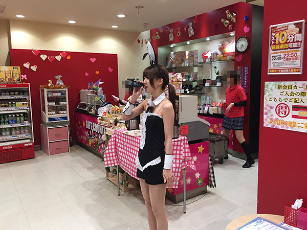 今回はメイド風コスチュームで参戦します! まずはマイクでお客さまにご挨拶しようね~。