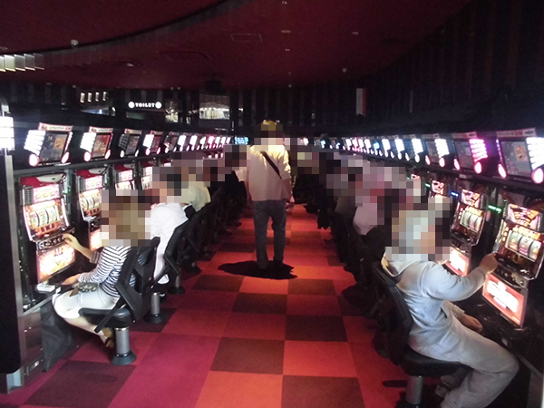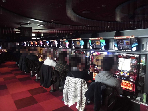 開店直後のパチスロをみてみると、「バジリスク~甲賀忍法帖~絆」や新台の「押忍!番長3」をはじめ、さまざまな機種が満席となっていた。