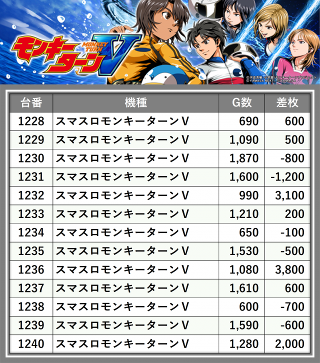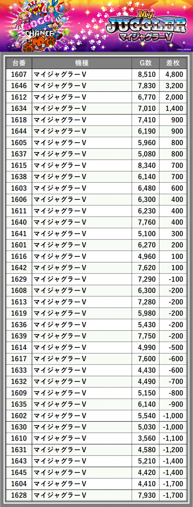 厳選された取材対象機種をはじめ、その他スロット全体から好記録が飛び出した!プレイヤーが楽しんだ1日を下記データにて振り返ってみて欲しい。