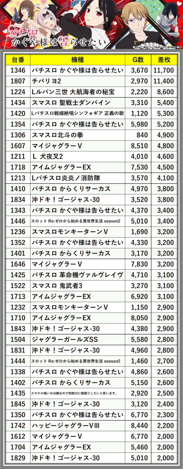 ※記事内の差枚表記はぱちタウン独自調査に基づくものです。ご了承ください。