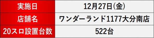 12月27日(金)ワンダーランド1177大分南店にて、DMMぱちタウンの新感覚取材「スロセレ」を実施。