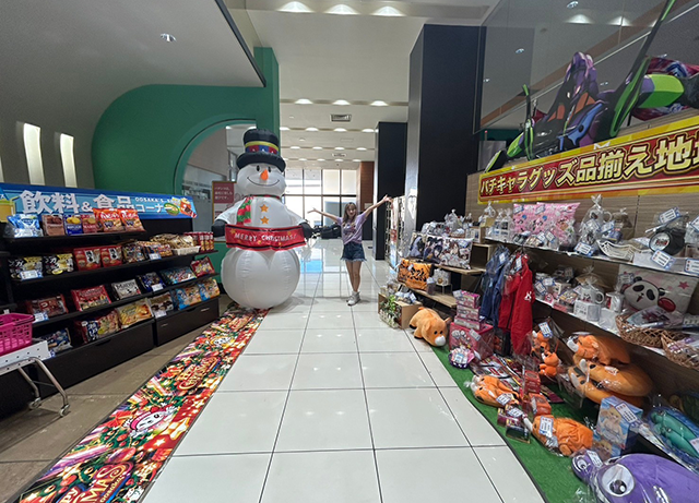 賞品コーナーの前では広い通路を活かして、おもちゃがたくさん並んでいました!