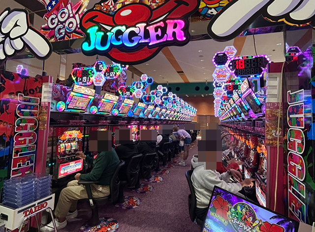 「マイジャグラーⅤ」や「アイムジャグラーEX」に楽しそうなプレイヤーが多くて、活気も大きいです★