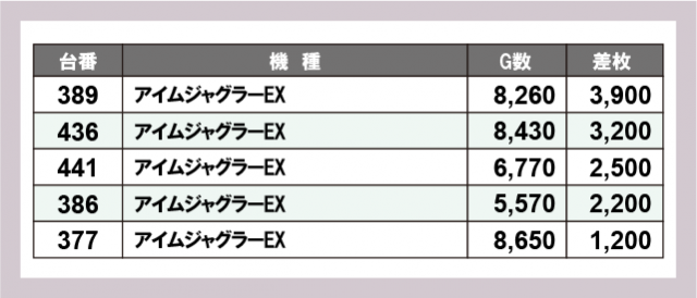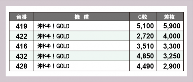 ※差枚数順に掲載しています