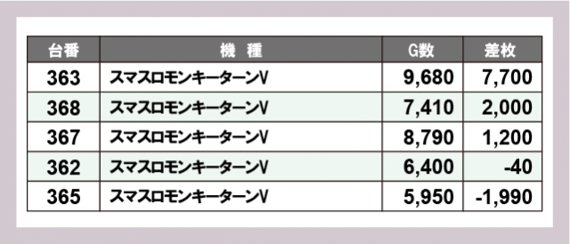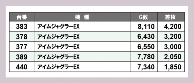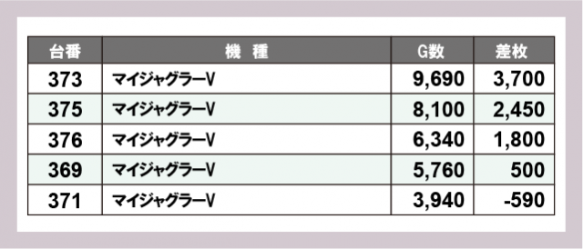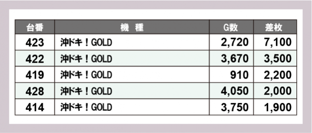※差枚数順に掲載しています