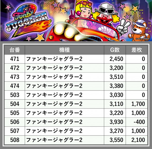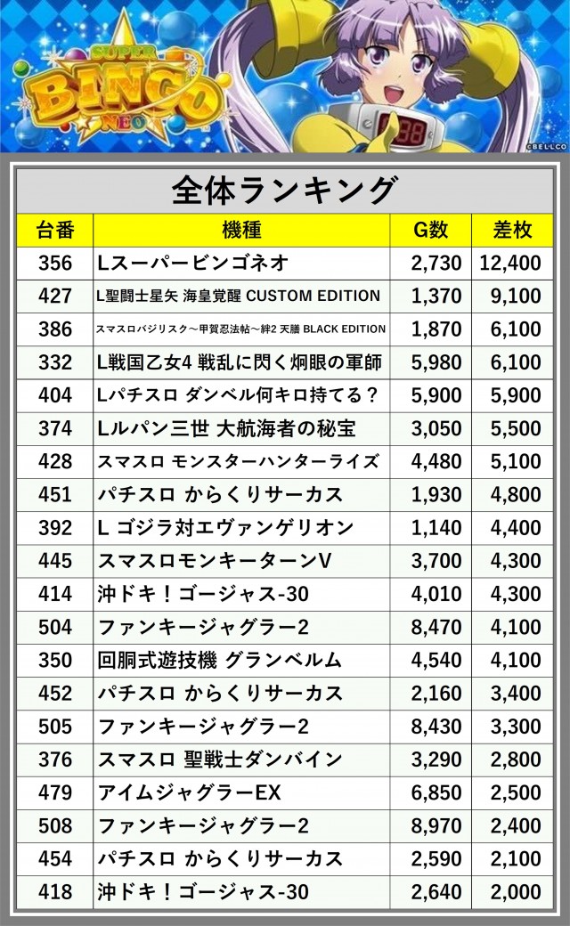 厳選された取材対象機種をはじめ、その他スロット全体から好記録が飛び出した!プレイヤーが楽しんだ1日を下記データにて振り返ってみて欲しい。