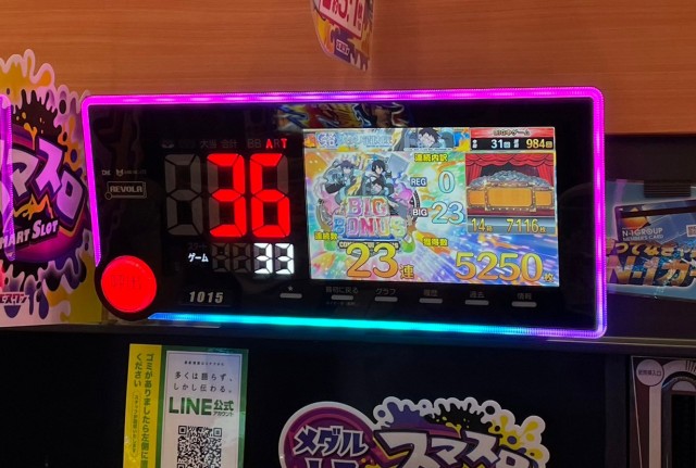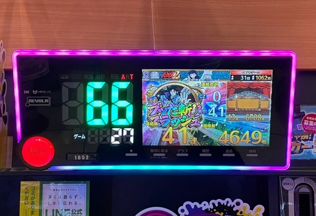 優秀台を見てみると、トップに立ったのは『Lパチスロ炎炎ノ消防隊』。1015番台が+9,420枚を記録。もう少しで万枚に届こうかというところ。さすがの実力を見せた。これに続いたのが人気シリーズの新台『Lルパン三世 大航海者の秘宝』。1053番台が+5,500枚をマーク。早くもその実力を発揮している。3位はお馴染み『スマスロ北斗の拳』。1036番台が+4,970枚を達成した。今なお最前線を走り続けるのは素晴らしいの一言。僅差で続いたのが、867番台が+4,850枚を出した『パチスロ からくりサーカス』。こちらも人気機種として先頭を突っ走っている。以下、+3,880枚の『L犬夜叉2』1052番台、+3,870枚の『沖ドキ!BLACK』762番台、+3,590枚の『マイジャグラーⅤ』1172番台、+3,120枚の『パチスロ かぐや様は告らせたい』857番台、+2,960枚の『アイムジャグラーEX』1155番台と続いた。