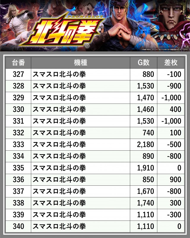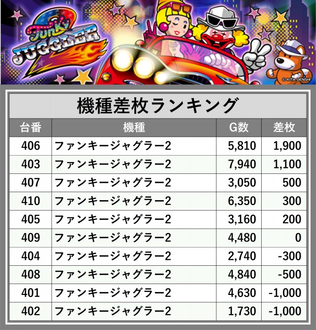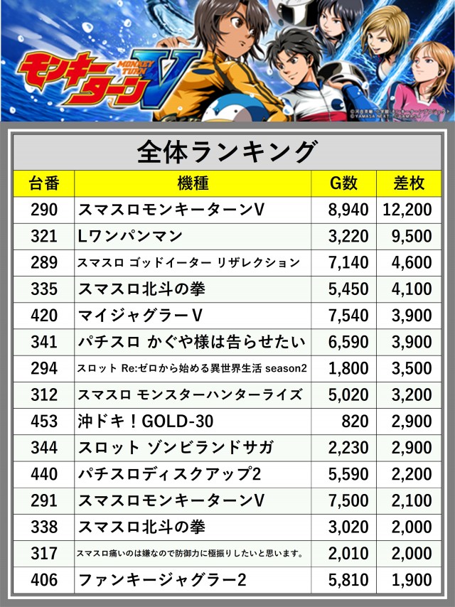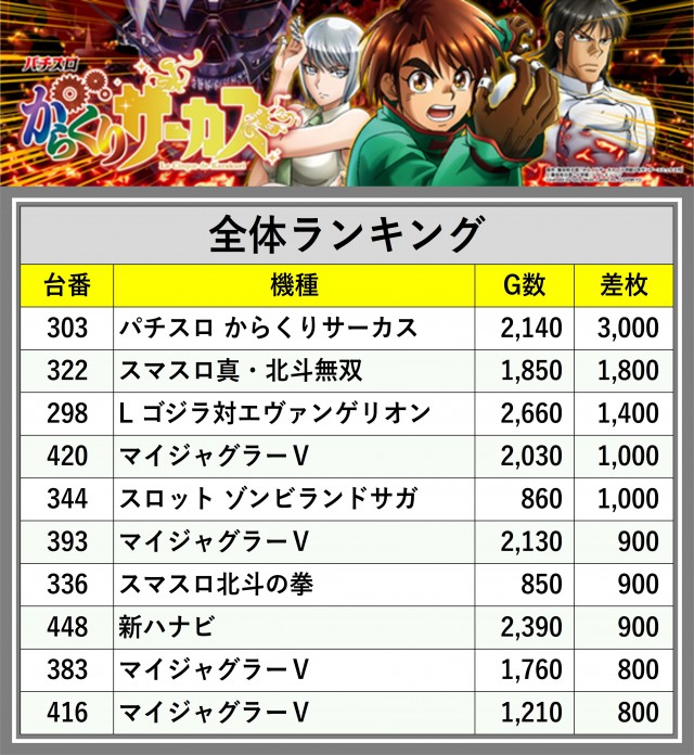 ※差枚数順に掲載しています