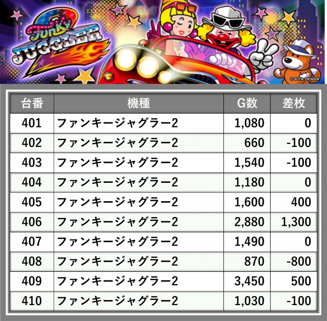 ※台番順に掲載しています