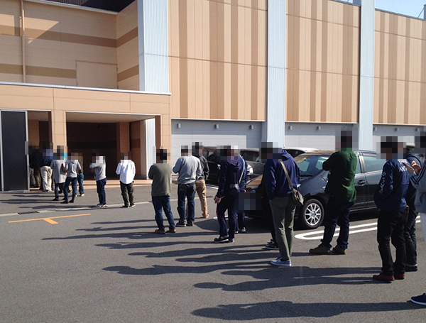 開店前には60名前後のプレイヤーが集まっており、ホールにむかって伸びる列が期待の大きさをあらわしているようであった。