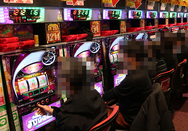 「ウルトラミラクルジャグラー」も満席に近く、24回や27回のボーナスを獲得している台があった。