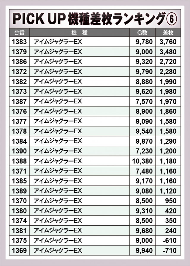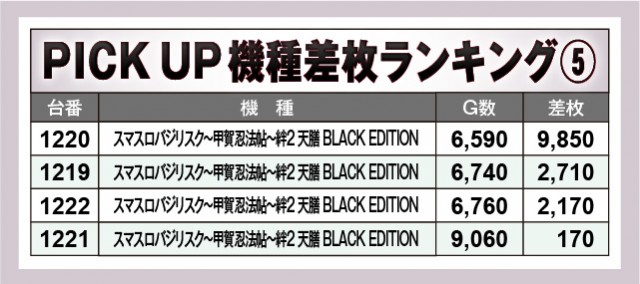 万枚OVERを達成した『L聖闘士星矢 海皇覚醒 CUSTOM EDITION』は当然ながら、惜しくも万枚到達とはならなかった『スマスロバジリスク~甲賀忍法帖~絆2 天膳 BLACK EDITION』など、活気と熱気を披露してくれた両機種。そこにメダル機『パチスロ交響詩篇エウレカセブン HI-EVOLUTION ZERO TYPE-ART』『パチスロ炎炎ノ消防隊』『パチスロ甲鉄城のカバネリ』も名を連ね、『アイムジャグラーEX』も分かりやすいほどの好状況を示してくれた。スペック問わず活躍した1日で、誰もが有意義な時間を過ごせたことだろう。