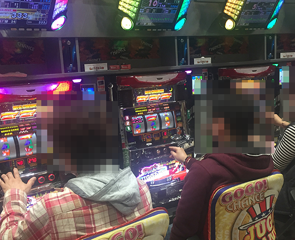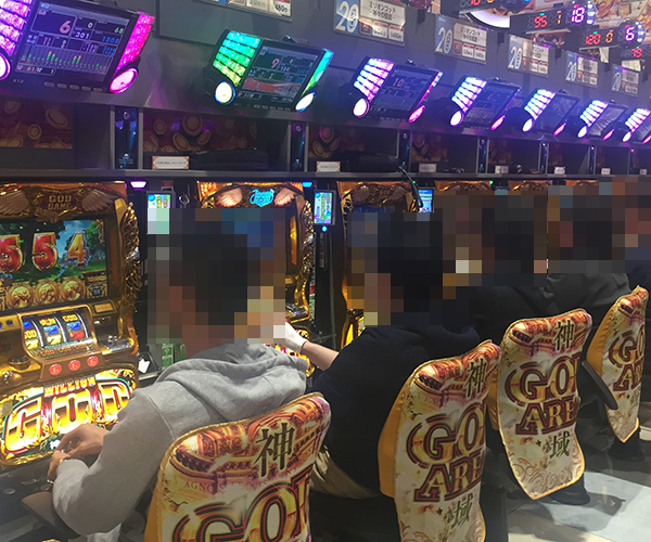 14時頃のパチスロでは、「バジリスク~甲賀忍法帖~絆」や「ヱヴァンゲリヲン・勝利への願い」に理想的ともいえる展開で遊技を楽しんでいるプレイヤーがおり、輝くような笑顔をみせていた。