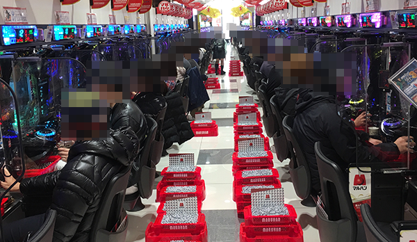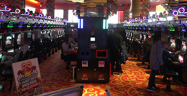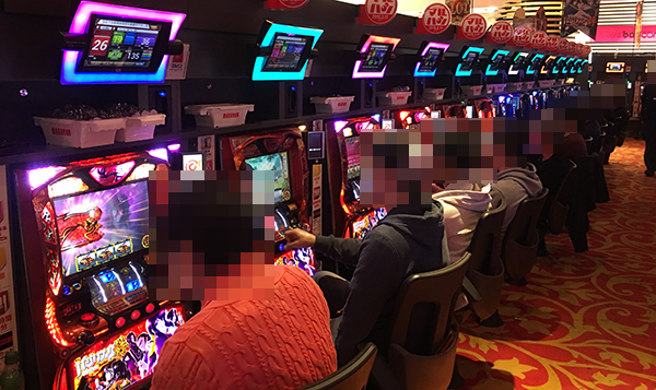 取材日となった3月22日も大勢のプレイヤーが来店しており、パチンコ・パチスロともに活気づいていた。
