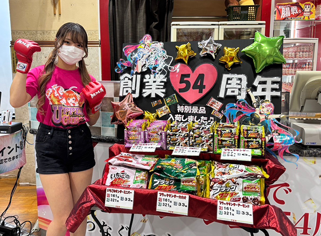 グループの創業54周年を祝うかのように、賞品コーナーにたくさんのお菓子が並んでいたことも印象的。