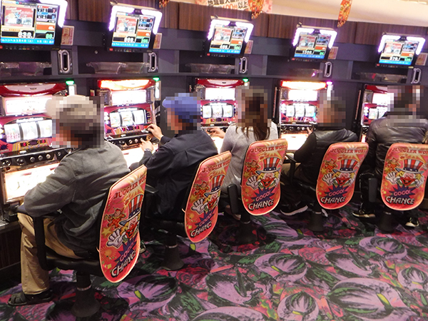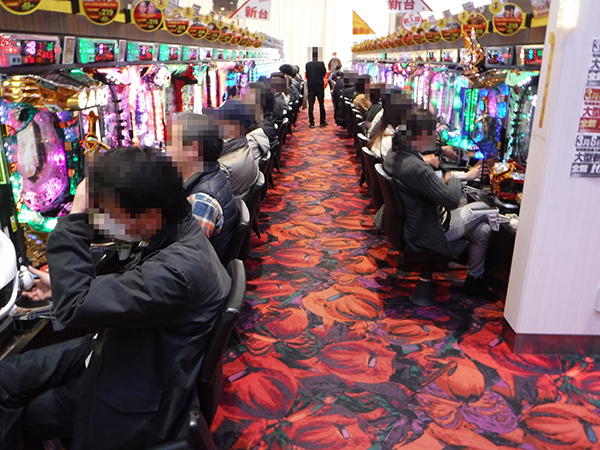 ほかに、「ミリオンゴッド‐神々の凱旋‐」や「パチスロ北斗の拳 転生の章」などに華やかなシーンがみられ、プレイヤーたちの表情も明るかった。