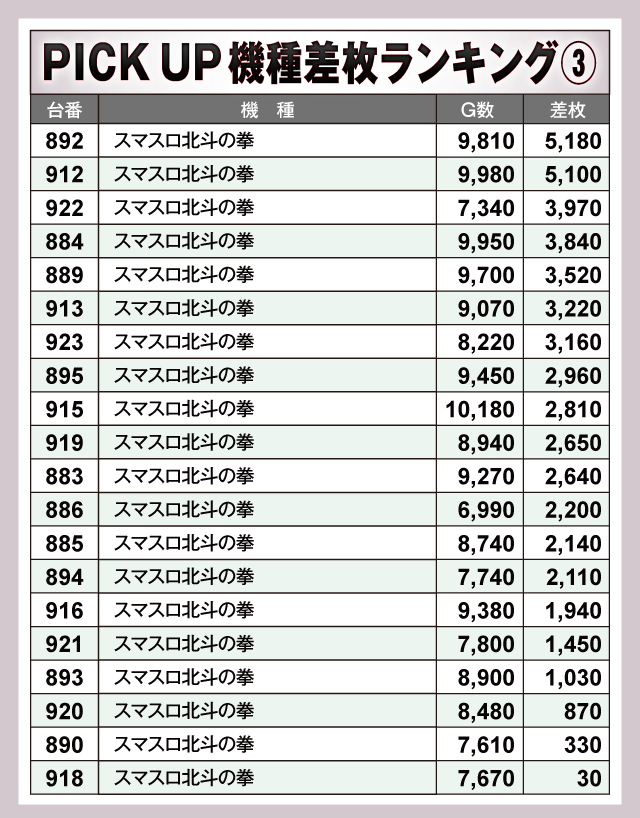 ※差枚数順に掲載しています。