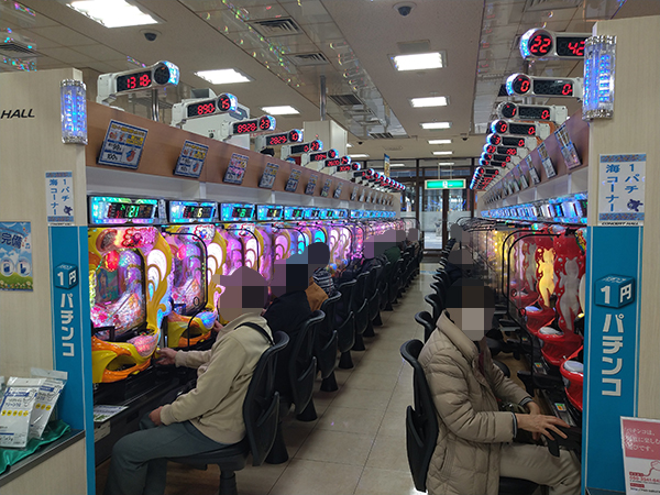 1円パチンコは「PAスーパー海物語 IN 沖縄5 with アイマリン」といった海物語シリーズが人気を集めており、活気があちこちで感じられた。
