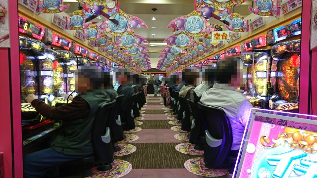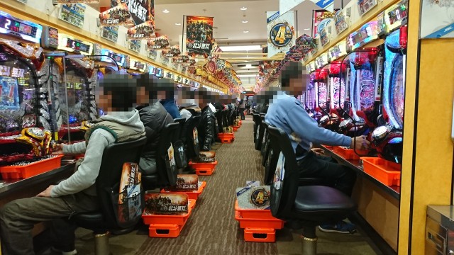 14時過ぎの4円パチンコでは、「CR花の慶次X~雲のかなたに~」や「ぱちんこCR真・北斗無双」などの定番機種を筆頭に盛況。