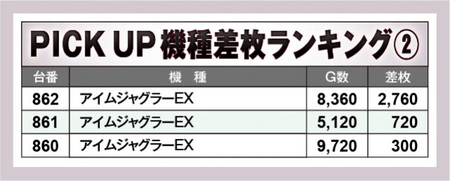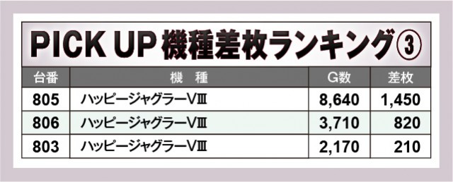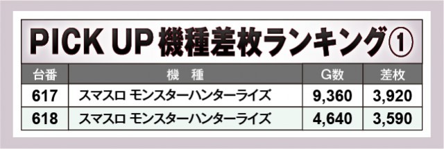 優秀機種として名を連ねた『スマスロ モンスターハンターライズ』『アイムジャグラーEX』『ハッピージャグラーVⅢ』は、全台プラス差枚数を達成するという驚きの結果に。いずれも朝から閉店まで打ち倒されたという事実も見られ、遊技していたファンは相当な手応えを感じていたはずだ。特に『ジャグラー』シリーズの存在感は圧倒的で、コンスタントなボーナス当選はファンを笑顔にしていたのは間違いない。