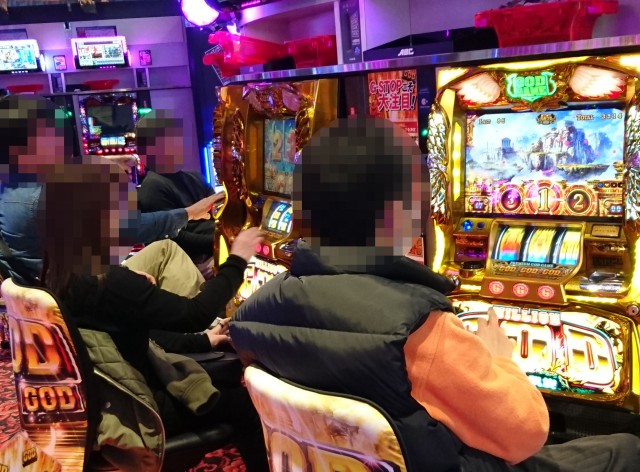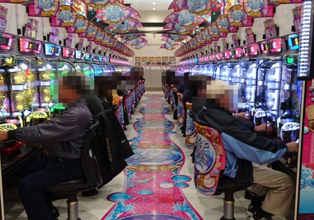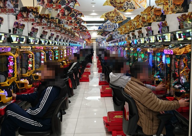 店内では、多くのプレイヤーが遊技を楽しんでおり、パチンコ、パチスロの各シマからにぎわいが感じられた。