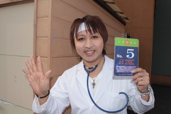朝イチは5番の整理券を片手にポーズをとり、やる気も満点だ!