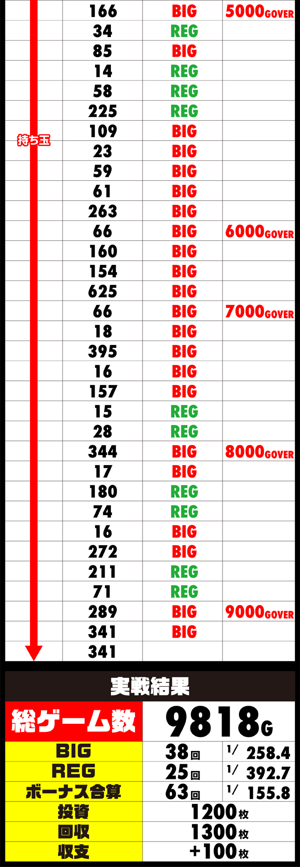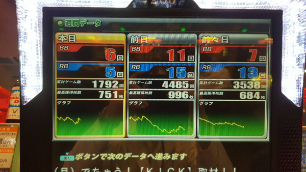 チャレンジ失敗にくわえ、差枚のプラスもわずかと、最終的なデータはイマイチ…。序盤は成功への期待が大きかっただけに、かなしい結果となった。