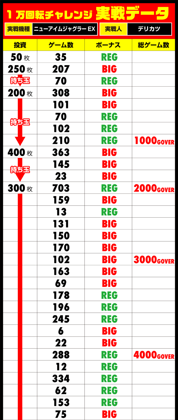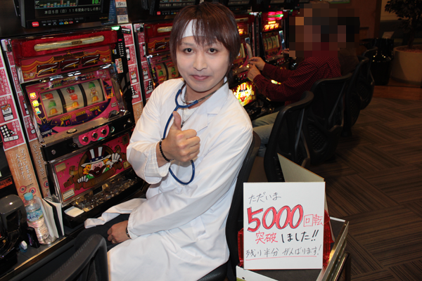 スタート時からレバーを叩くスピードが早く、12時には1800Gを目前と、1万回転に余裕でとどくペースをみせていた。