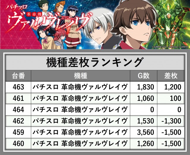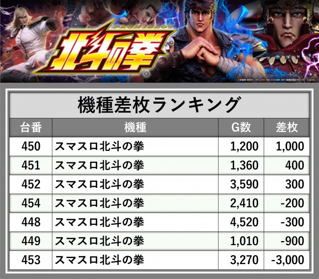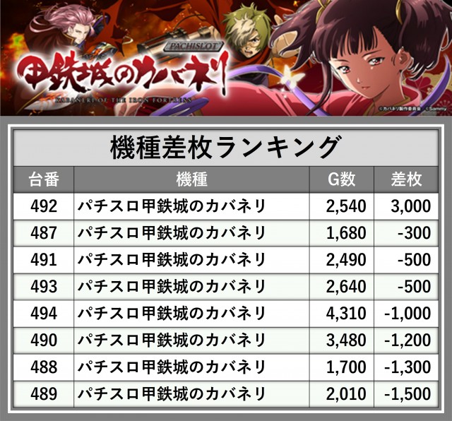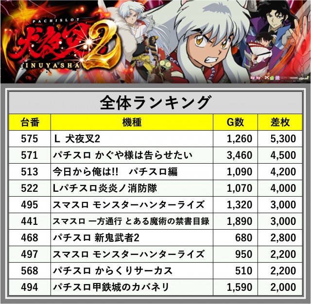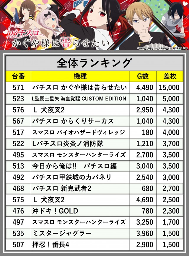※差枚数順に掲載しています