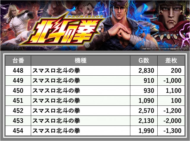 ※台番順に掲載しています