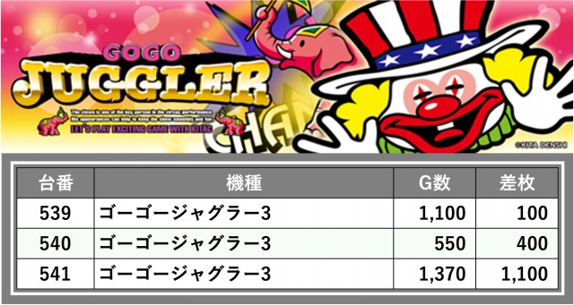 厳選された取材対象機種をはじめ、その他スロット全体から好記録が飛び出した!プレイヤーが楽しんだ1日を下記データにて振り返ってみて欲しい。