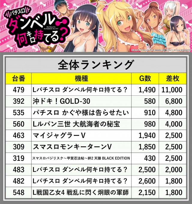 厳選された取材対象機種をはじめ、その他スロット全体から好記録が飛び出した!プレイヤーが楽しんだ1日を下記データにて振り返ってみて欲しい。