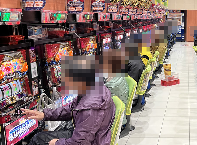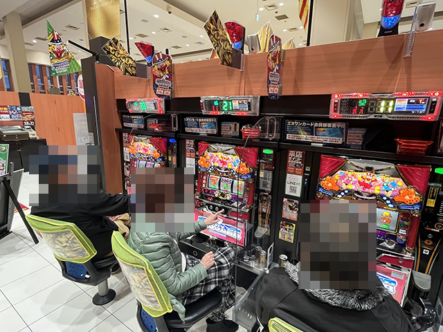 パチスロコーナーをみてみると、さまざまな機種が楽しまれていた。