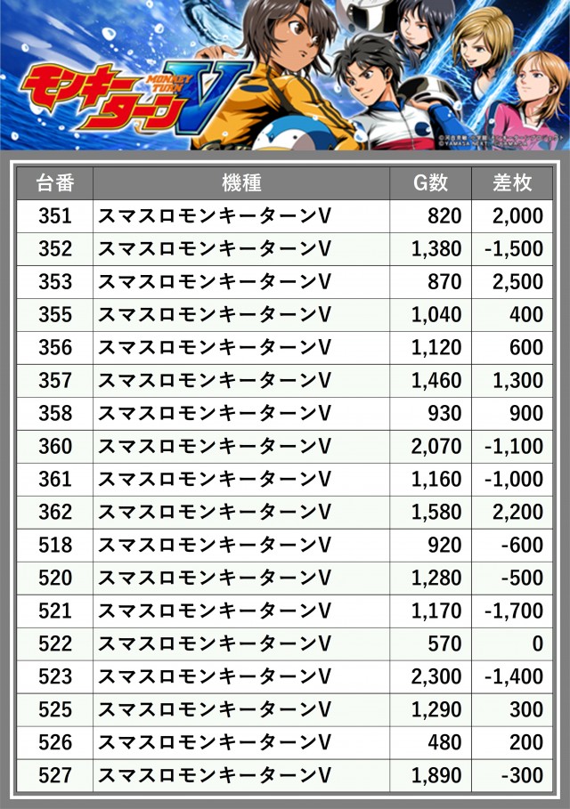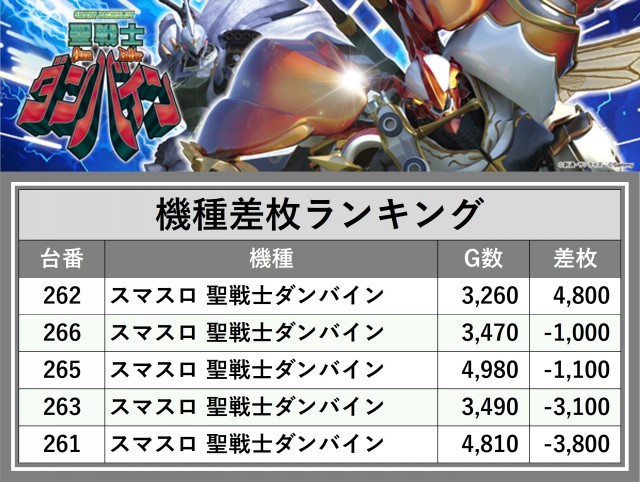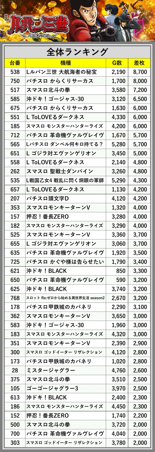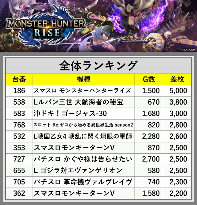 ※差枚数順に掲載しています