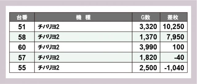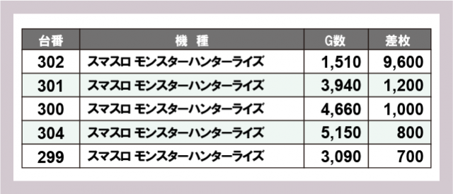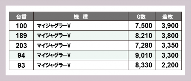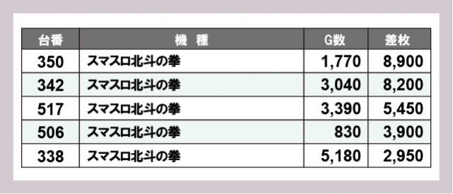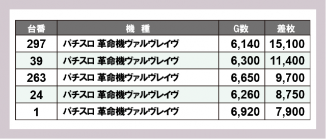 ※差枚数順に掲載しています